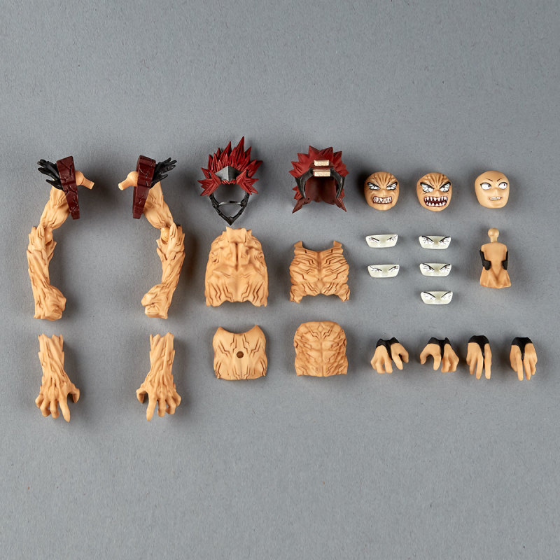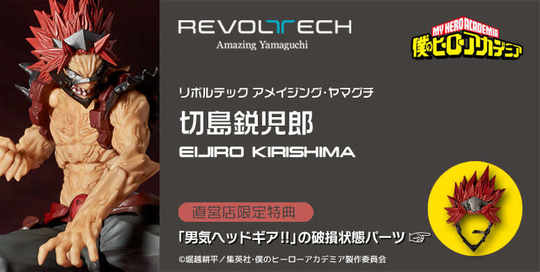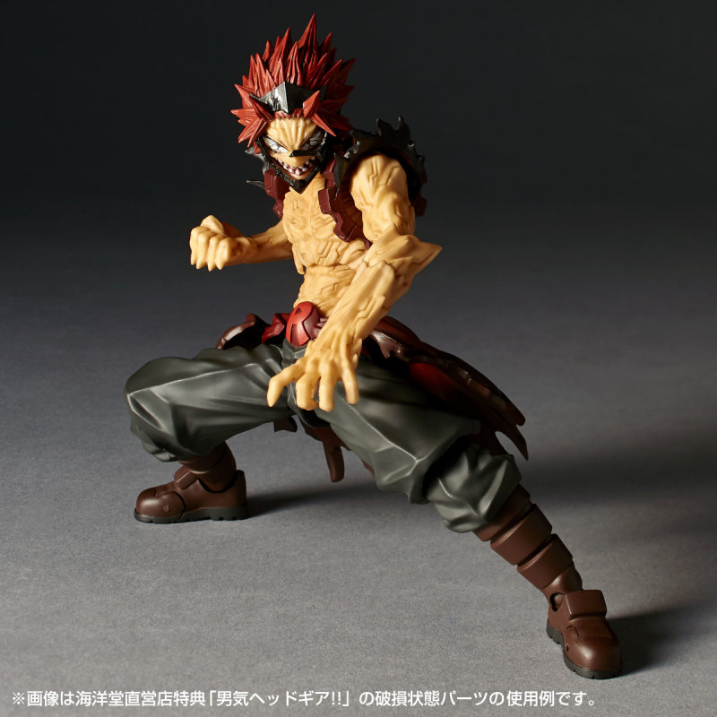 「Amazing Yamaguchi 切島銳兒郎」可動人偶,尺寸全高約 15.5 公分,還原露出上半身的格鬥裝英雄服,特色的刺刺雞窩頭、男子漢頭盔裝備、精實的肌肉等各處細節都高度還原,腰間的腰布也經過設計,降低身體的可動域影響。