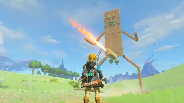 例如說這名叫作ZAKUYA(@ZAKUYA_BOTW)的玩家,就利用《薩爾達傳 王國之淚》的新玩法,製作出一台...會從ㄐㄐ噴火自爆的超大型巨人,雖然噴火的部分是需要透過弓箭送火過去引爆,但最後所呈現出來的效果,還真的是讓人忍不住噴笑,這到底要說是創意還是浪費才能咧XD?