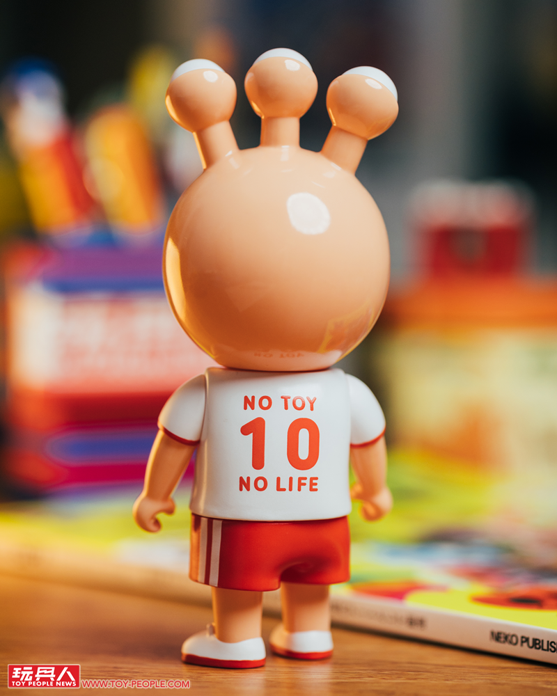 本次聯名推出的「保介男孩 玩具人 Ver.」,維持保介男孩特色的風格,融合保介元素與有如小學男孩的身體,除了服裝換上象徵玩具人的紅白配色之外,服裝的正面更寫著爆炸性的「從小就看玩具人」宣言! 背面則是代表玩具人 10 周年的 10 號數字,以及展現對玩具滿滿熱忱的「NO TOY NO LIFE」宣言~相信與羅賓唐一樣為七八年級生的玩具人都會非常有感!另外也有一顆充滿喜感的「羅賓頭」可以進行換頭的動作,紅色小帽子上印有 TOY 的「T」字。兩種造型都非常趣味可愛,絕對是玩具人必須入手的限定款式!