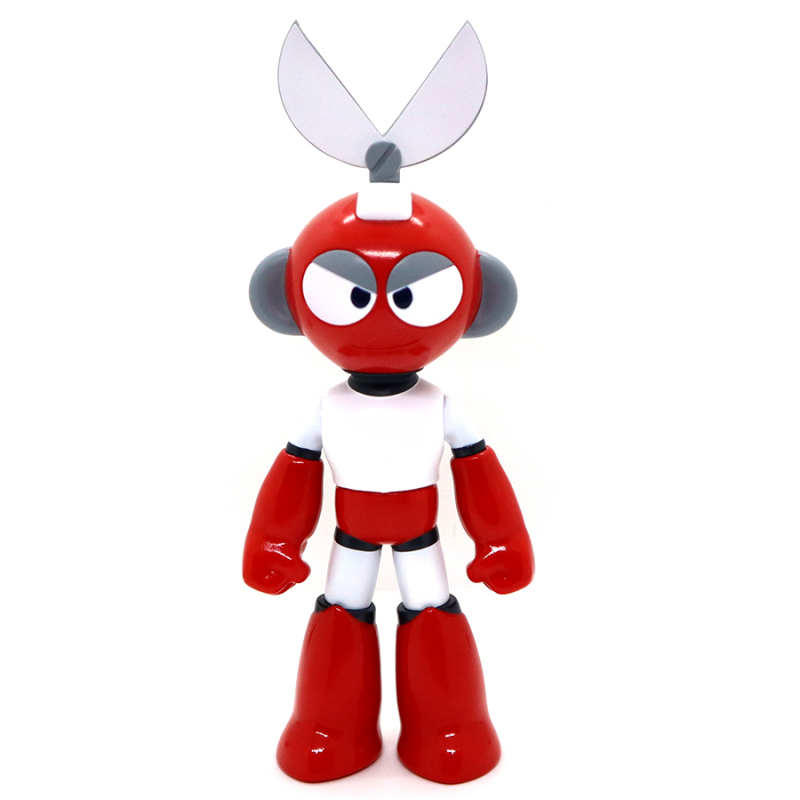 剪刀人初次登場是在初代的洛克人的六位BOSS之一,其編號為DRN.003,正好接續在洛克人和蘿露(Roll)之後,原本是伐木用機器人,與洛克人猶如兄弟般地位(洛克人是石頭,猜拳石頭贏剪刀)。這款由Electric Toys推出的SOFVIPS剪刀人軟膠立體人形,同樣高約17公分,還原了剪刀人的造型並實體化。紅白相間之外型色,加上頭頂那把特徵出眾的剪刀,還有一雙大眼睛,讓人一看就知道是他。