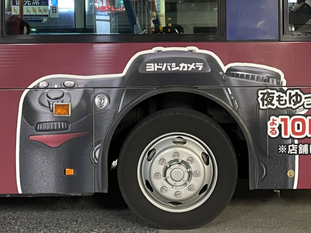 而日本街道公車上,由知名家電量販店「友都八喜」( ヨドバシ ) 推出的廣告,以相機的形象設計在公車輪胎處,該設計也被日本網友所讚賞,成為最近熱議話題之一。