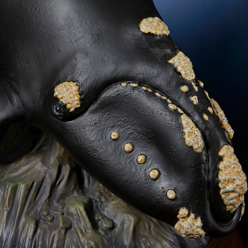 第二彈以全高 45 公分尺寸雕塑出因捕鯨業導致瀕臨絕種、被稱為「地球上最溫柔的動物」的露脊鯨親子,呈現成鯨陪伴尚未熟習游泳的幼鯨下潛、一旁好奇的寬吻海豚也靠過來伴泳的溫馨場景。細膩且考究的造型與色彩塗裝,徹底再現無背鰭的優美背部曲線、腹部白班以及頭部特徵的硬質黃灰色皮繭,同時明亮光澤的眼睛色彩也為作品賦予靈活。