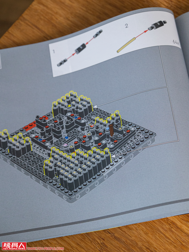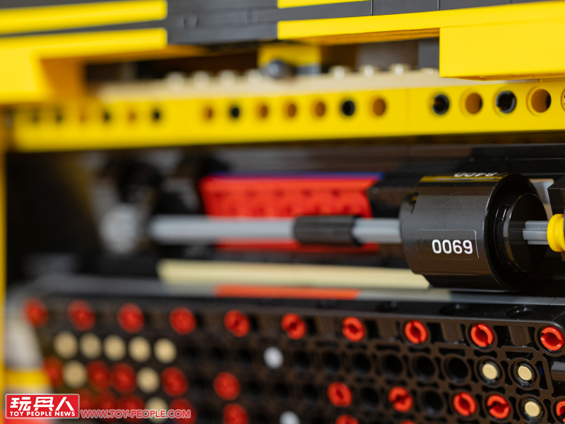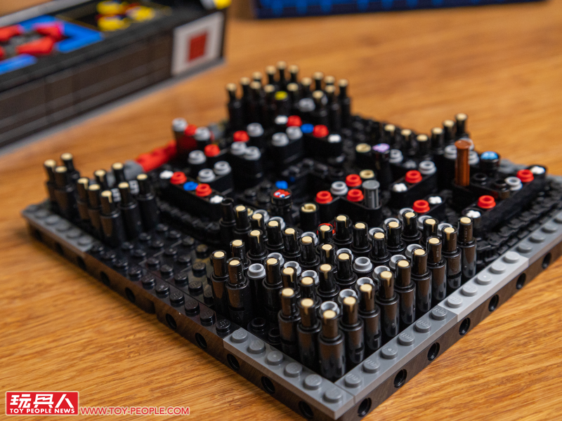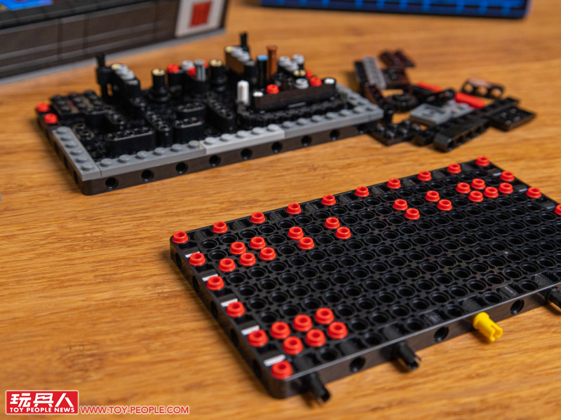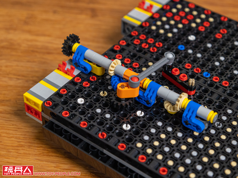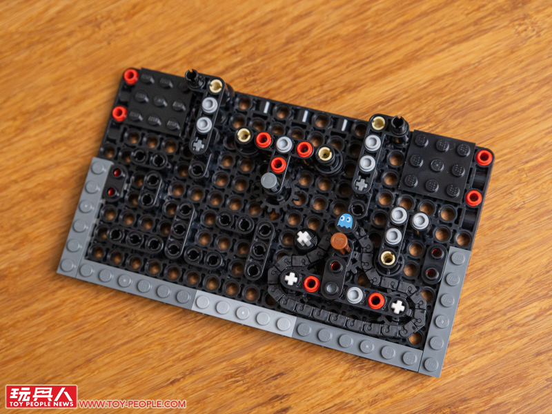 ▼ 那麼,現在來看看這台 PAC-MAN 可以動起來的秘密吧!首先是採用佈滿孔洞的大片平板零件為基底,在上頭安裝大量的插銷科技件,得以製作出可以同時拼上傳統磚塊與科技齒輪組的平面。