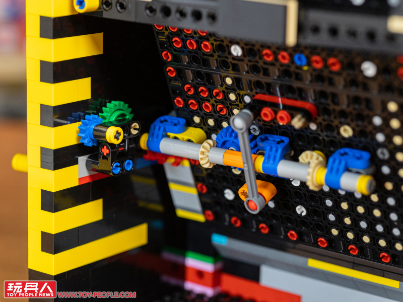 ▼ 旋轉把手就可以帶動正面迷宮裡的 PAC-MAN 跟幽靈們,只不過間距都是固定的,所以他們永遠都追不上對方;但轉動側邊操縱桿就可以動起來的遊玩體驗真的相當棒,說明書也有提到,「要讓幽靈們在轉角處順利轉彎不卡住」就是本作在設計上最大的挑戰之一,設計團隊利用機械測試了上千次才確立了不會出錯的拼搭結構,真的再次佩服!