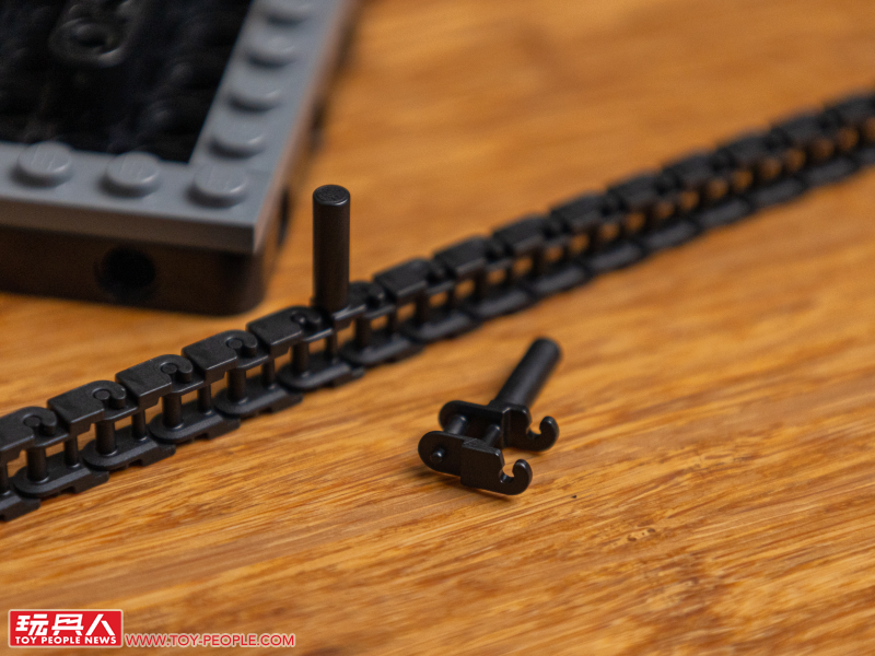 ▼ 再來就是鏈條的結構設計,利用帶樁的新零件達成可以在鏈條上安裝印製了小精靈、幽靈們 BLINKY&CLYDE......等 1×1 小圓點的可能!
