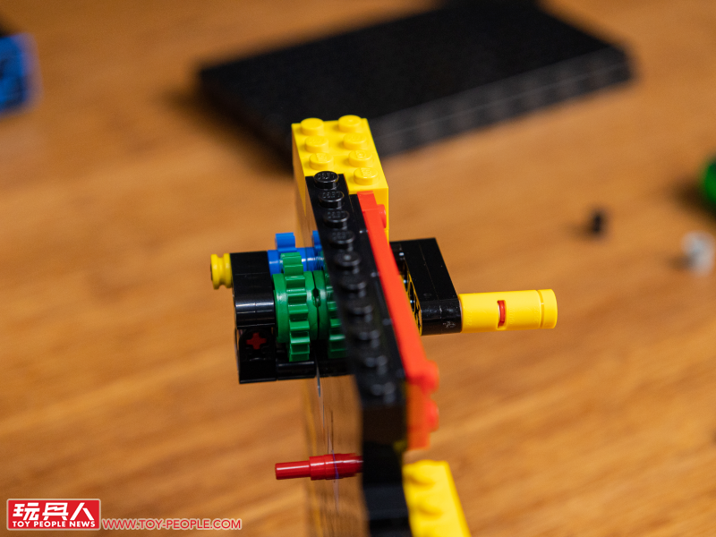 ▼ 相當巧妙的齒輪機構,拼完之後裝好,就剛好可以跟前面旋轉把手的零件連動在一起。