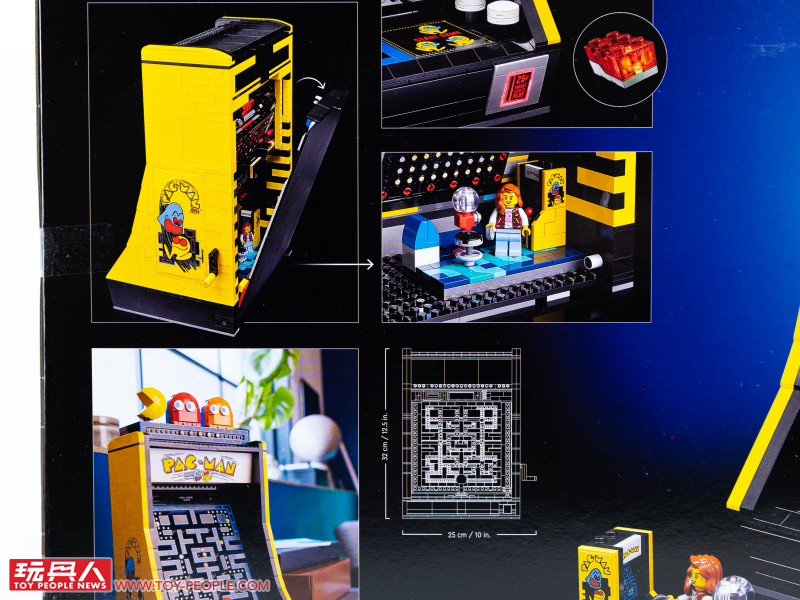 ▼ 迷你機台真的非常可愛,大概數年以前就有不少國內外樂高玩家開始自製這種迷你人偶規格的街機機台,終於等到官方推出啦!喜歡自製的樂高迷也可以參考一下拼法;人偶上衣也有專屬於這一款盒組的 PAC-MAN 印刷,真讚!