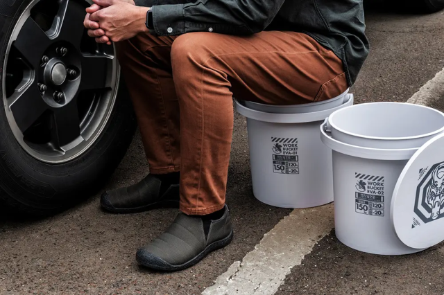這次與塑膠製品品牌 JEJアステージ合作的「可乘坐工作儲物桶」,主打剛強大容量的特性,15L 的大小適合配放工作用的雜物與器材,甚至生活使用也很方便。更可以作為座椅使用,桶身的強韌度可以承受 150 kg 的重量。