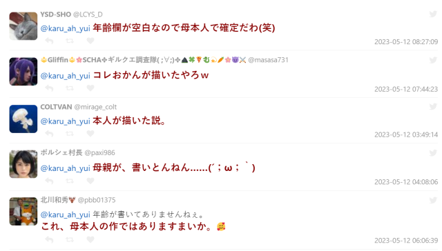 不過也有網友開玩笑,說如果年齡格空白的,十之八九應該是母親自己畫的,把自己畫的美美的,應該是很合理的吧 www。