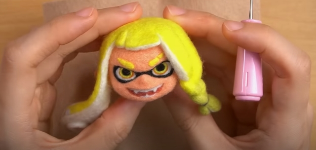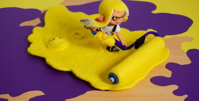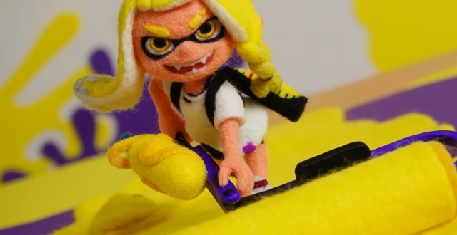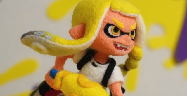 而世界上當然也少不了以《斯普拉遁》為主題的創作,YouTube上一個基於興趣專門製作羊毛氈的頻道「むしイモ」,就作出了拿著滾筒塗地的花枝女孩。
