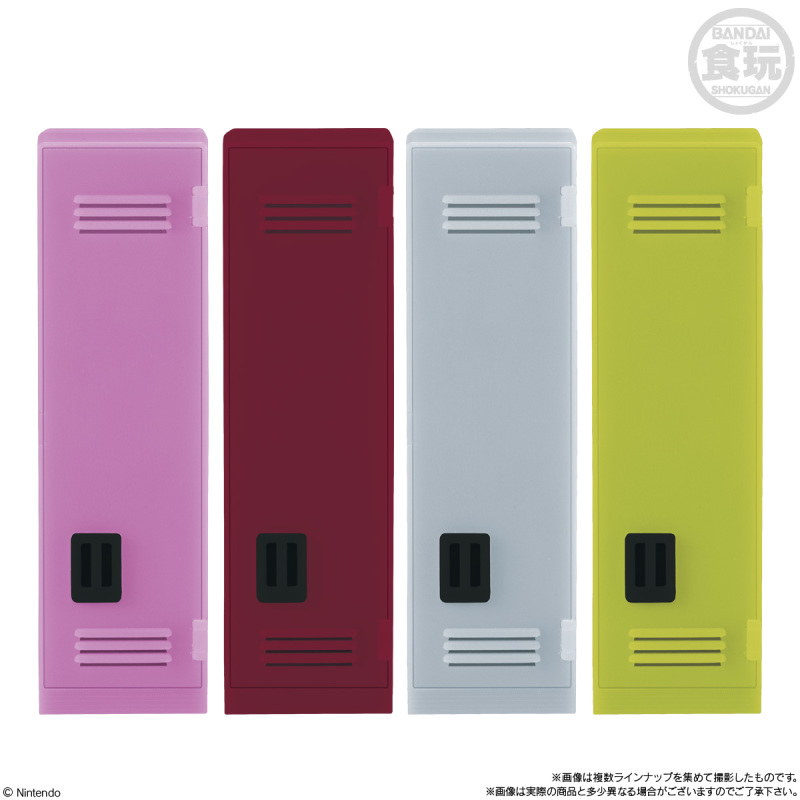 「斯普拉遁3 置物櫃收藏」將遊戲中登場的 8 種色彩置物櫃立體化,當然每個都已經是最大尺寸,徹底再現通風口、門把與層架,還附上了多種貼紙、迷你魷魚和糖果罐讓你裝飾。如果還是覺得太單調的話也沒關係,內附專用零件能將每個置物櫃連接起來,更有掛鉤零件能與另售的「斯普拉遁2 換裝收藏」連動,將各種服飾收納進去!