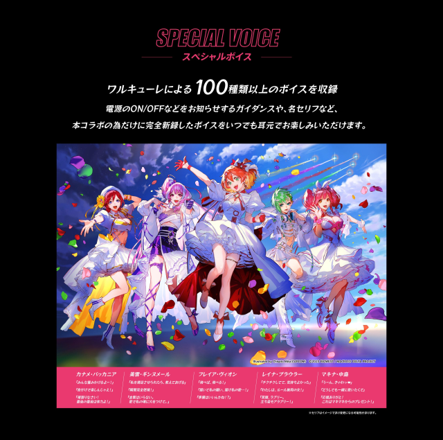 最大的特點就是收錄了超過 100 種以上的提示語音,而且都是請來聲優原班人馬重新錄製,包含;芙蕾雅·薇恩、美雲·基努梅爾、要·巴卡妮雅、瑪基娜·中島、蕾娜·布勞拉。主要語音為各經典台詞,以及耳機相關的使用提示。