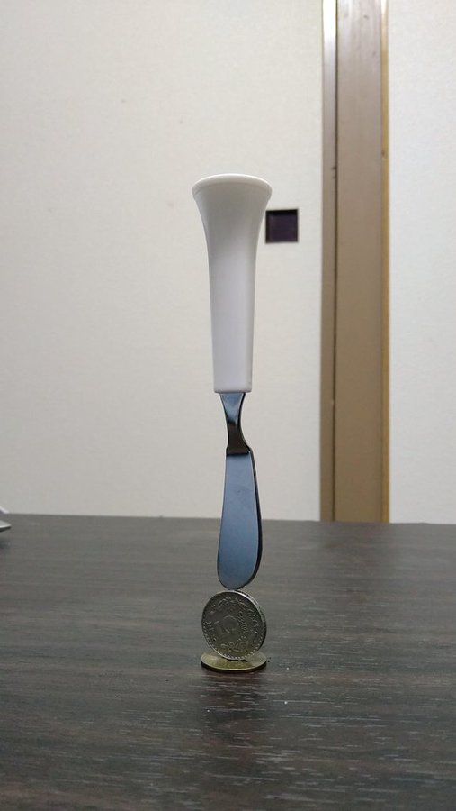 不知道各位有沒有在端午節的時候立過雞蛋呢?像這種需要專注度與平衡感的雜技,其實應該也有不少電電夥伴是高手吧。今天要介紹一位推特上的「平衡達人」-たぬ(@thumb_tani),他最近用了一把果醬刀與幾顆硬幣,成功達成直立的傑作,在推特上引起討論,更讓不少人注意到他的能耐。