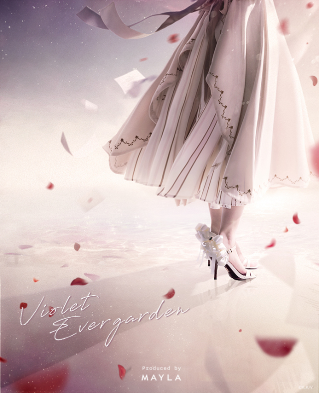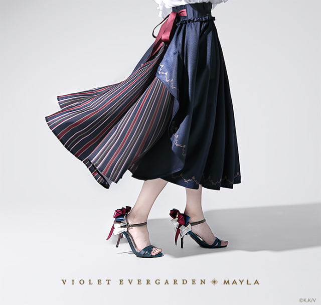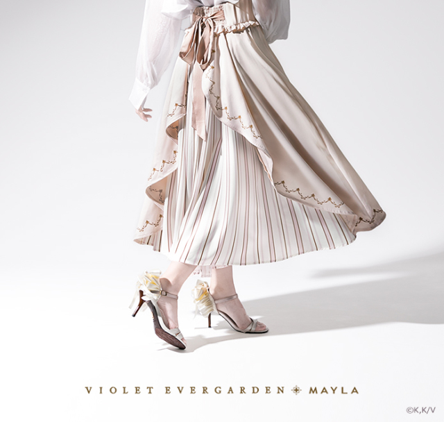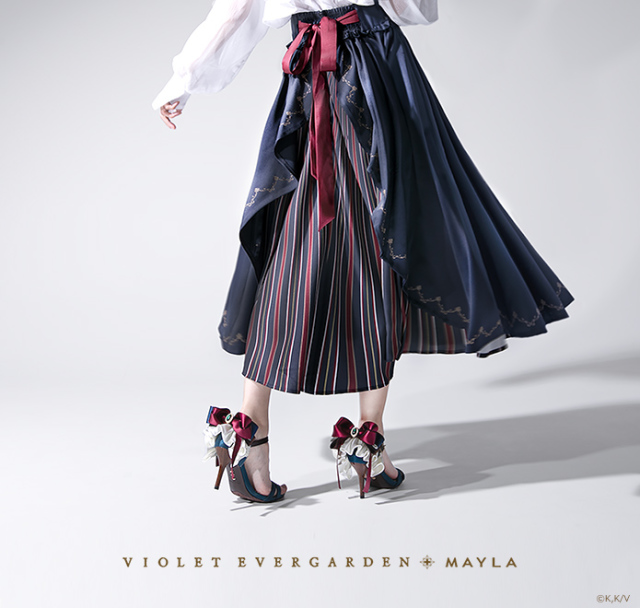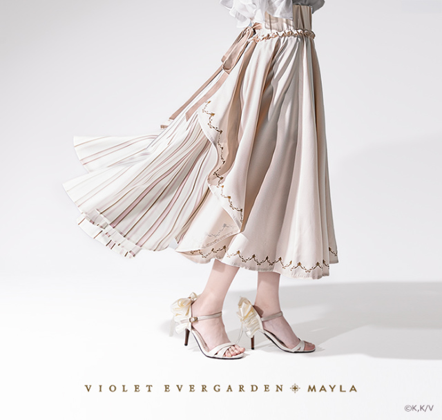 先前曾推出《紫羅蘭永恆花園》高跟鞋、涼鞋,與鐵罐巧克力的Mayla Classic ,這次則是推出了受注販售的長裙,同樣將薇爾莉特的典雅之美毫不減損地帶到衣著上。