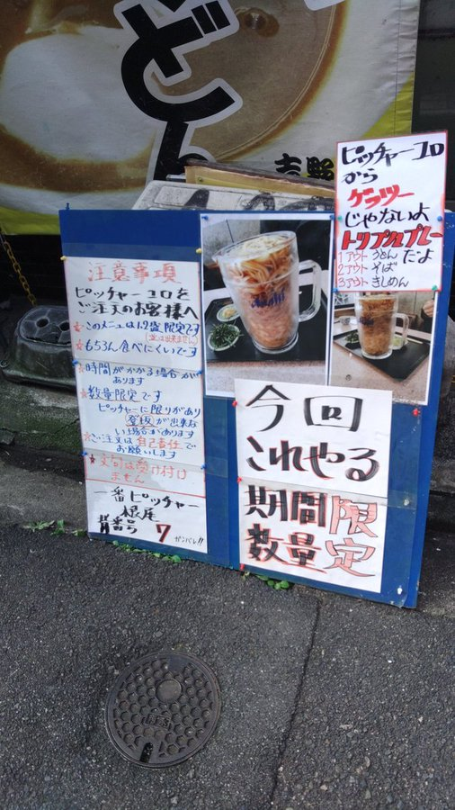 今天要來介紹一家在推特上引起話題的店鋪-「めん処吉野屋」,蔚為話題的菜單「啤酒杯烏龍麵」,超浮誇的視覺效果,讓不少網友躍躍欲試。