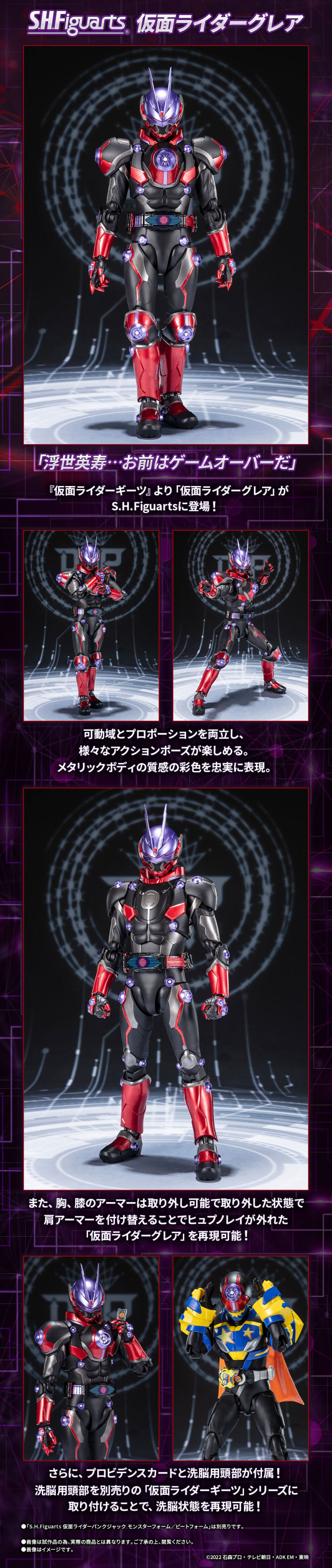 由日本 BANDAI SPIRITS 公司收藏玩具事業部 TAMASHII NATIONS 發行的人氣可動模型『S.H.Figuarts』系列,將推出《假面騎士GEATS》主題的最新商品:「假面騎士GLARE」,參考售價為 8,250 日圓,預計 2023 年 11 月發售。