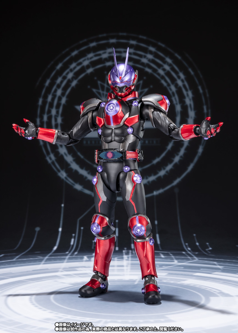 「S.H.Figuarts 假面騎士GLARE」,尺寸全高約 15 公分,忠實再現劇中生存遊戲「慾望大賽」GM吉洛里運用天意之卡變身的形態,細膩刻畫出特徵的紫色複眼和充滿未來感的流線型裝甲細節,並施以質感的金屬紫、金屬緋紅和灰黑色,還原劇中形象!