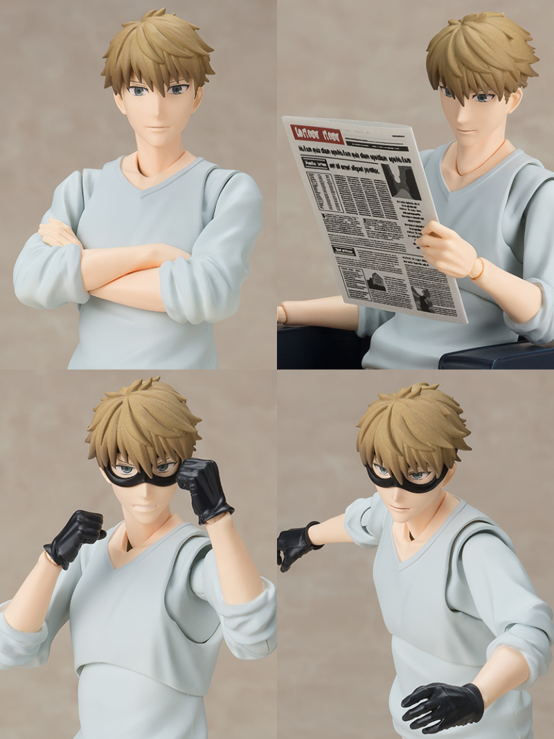 配件部分包含報紙、雙手抱胸零件、極具親和力的一般臉、笑臉、害羞臉表情,以及有、無露出額頭的兩種髮型零件能替換,能夠再現作為心理醫生洛伊德與好爸爸時的一舉一動,更有戴上黑色面具、手套的替換零件,能夠再現安妮亞最愛的完美「洛伊德曼」姿態!(商品不包含沙發)