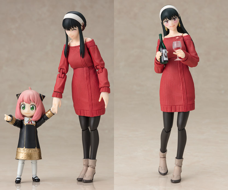 配件部分包含放下、盤起長髮的兩種替換髮型零件,以及溫柔可愛的笑臉、害羞臉和作為佛傑家母親時守護家人時露出的堅毅神情,此外還將附上可再現坐姿的裙襬替換零件、紅酒、酒杯與喝醉表情零件,替換後就能把玩出劇中超可愛的喝醉姿態!
