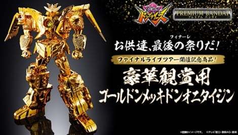 為紀念於 2023 年 4 月 8 日展開的「暴太郎戰隊Don Brothers Final Live Tour 2023」,萬代網路限定品商店 PREMIUM BANDAI 將推出金光閃閃的「豪華觀賞用電鍍金 DON鬼退神」紀念商品!參考售價為 24,200 日圓,預計將於 2024 年 2 月發售。
