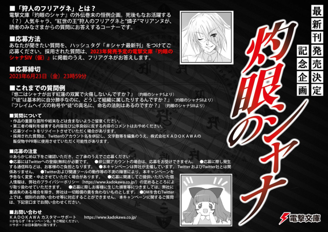 由高橋彌七郎撰寫的系列輕小說《灼眼的夏娜》,過去曾推出過正傳 22 卷、短篇集第 0 卷與 S~SIII三卷,共計 26 卷,於 2012 年結束。在今日 ( 5/23 ) 電擊文庫震撼宣布,將推出《灼眼的夏娜 SIV》( 暫定,名稱未定 ) 新刊小說,也確定將會在 2023 年年間發行,讓不少粉絲震驚不已,也瞬間登上推特趨勢。