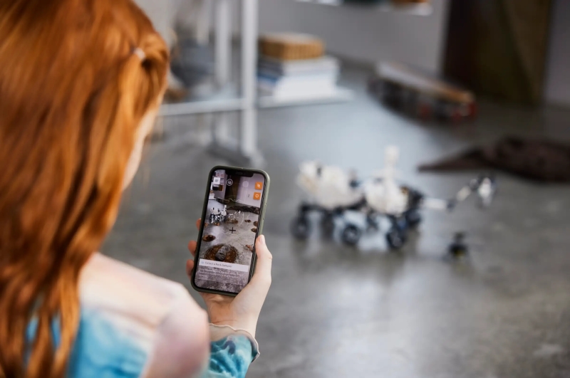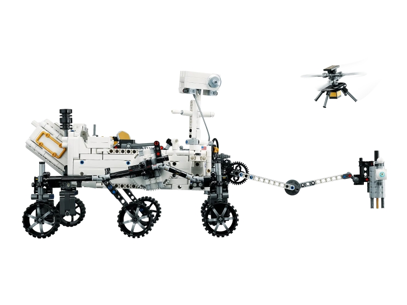 本作一共由 1132 片零件組成,完成之後的規格為 23 公分高、32 公分長,除了以科技零件高度還原毅力號的造型與六輪結構之外,還搭載了可以克服險峻地形的鉸接式懸吊、達到 360° 的轉向、可移動的機械臂、採集岩石的裝置,與磚拼形式的攝影機......等,當然,無人直升機-機智號也一起樂高化!此外,這次的毅力號樂高模型還可以搭配手機、專屬 APP 一同遊玩,以 AR 技術讓毅力號在手機螢幕中彷彿真的行駛在佈滿岩石的火星表面,太空迷要收啊!