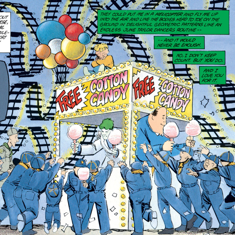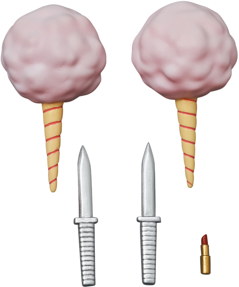 本作高約 16 公分,整體是依照漫畫當中「小丑」身穿的另一套西裝為題設計,刻畫出人字紋 (ヘリンボーン)的西裝外套相當搶眼,加上黑色西裝褲、紫色皮鞋,充分還原他登台的造型,頭雕有兩顆,分別是展現出邪惡笑容與沈醉在自己內心世界的閉眼表情,配件部分則附上了兩把小刀、口紅,以及漫畫中小丑在「免費棉花糖」小亭子裡送給孩子們的兩個棉花題配件,不過在漫畫原作當中發送棉花糖時已經是白色西裝的樣式了,所以搭配上一款小丑更能貼近原作。
