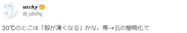 ▼有大神們幫忙解答原來是日文漢字「薄」的簡字:「20℃的地方是『殼會變薄』嗎。専→云的簡略」