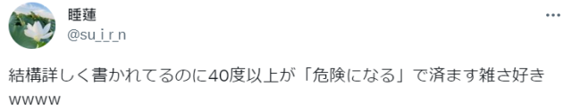 ▼「明明其他地方寫得很詳細40度以上卻用『會危險』就結束了隨便得好喜歡wwww」