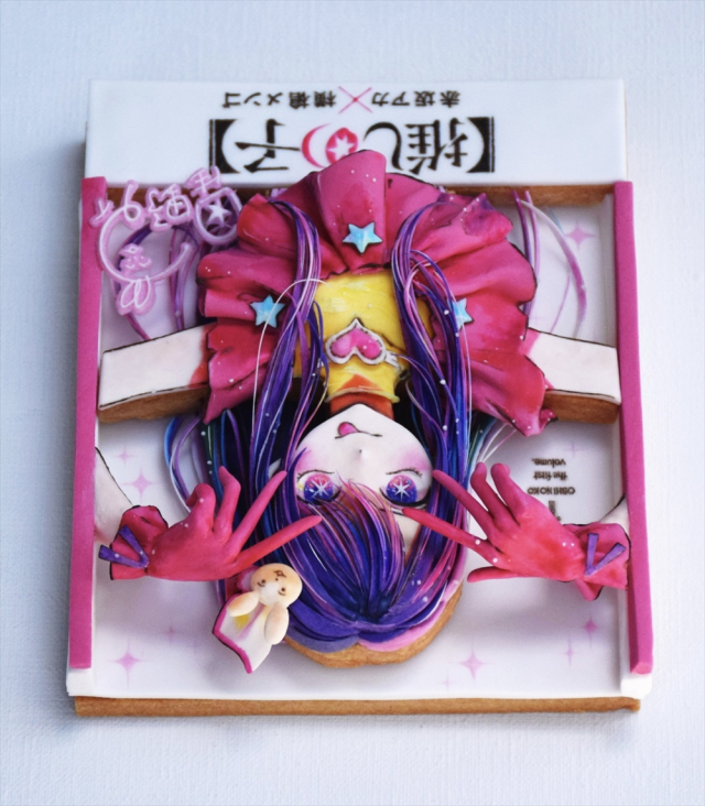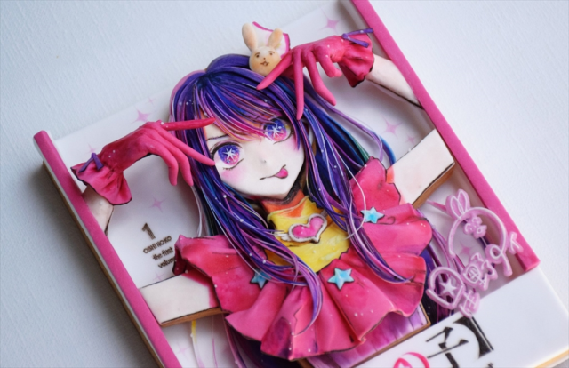 過去曾介紹過擅長製作造型糖衣餅乾的いずむ(@kiri0izm)這次又帶來新作品,那就是以《【我推的孩子】》單行本第一卷封面為造型的糖衣餅乾,而這次以漫畫單行本封面為造型依然使用了3D效果,細節非常地到位,不管是小愛的手、親筆簽名、裙襬的弧度與皺褶都靠糖霜和糖衣製作,但這種精美餅乾真的好捨不得吃掉啊!