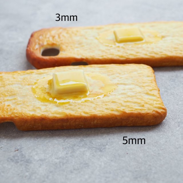 沒錯,這款手機殼的設計就是以烤麵包和熔化的奶油為主題,而且每一個細節都經過精心設計,先是成形,然後多次著色、砂紙打磨、最後塗上保護漆,每一個步驟都是由製作者純手工親自完成,也因為這樣,每一個手機殼都會有一點點不同,是獨一無二的手機殼。