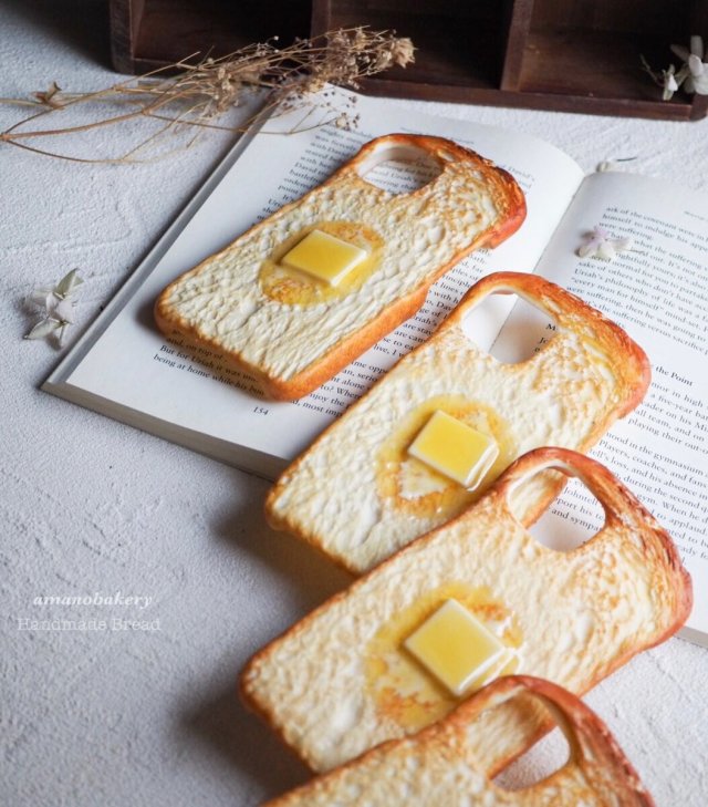 因為實在是太可愛,不少日本網友都大呼想要,而且更棒的是,就算你拿的手機不是iPhone(XD),也一樣可以買到這個讚讚的奶油吐司。畢竟是100%手工作業,無論你的手機是什麼型號,作者 amanobakery 都可以幫你客製化完成。除此之外,甚至還可以指定麵包要烤得多熟、還有奶油要塗得多厚。售價皆為4,300日元。