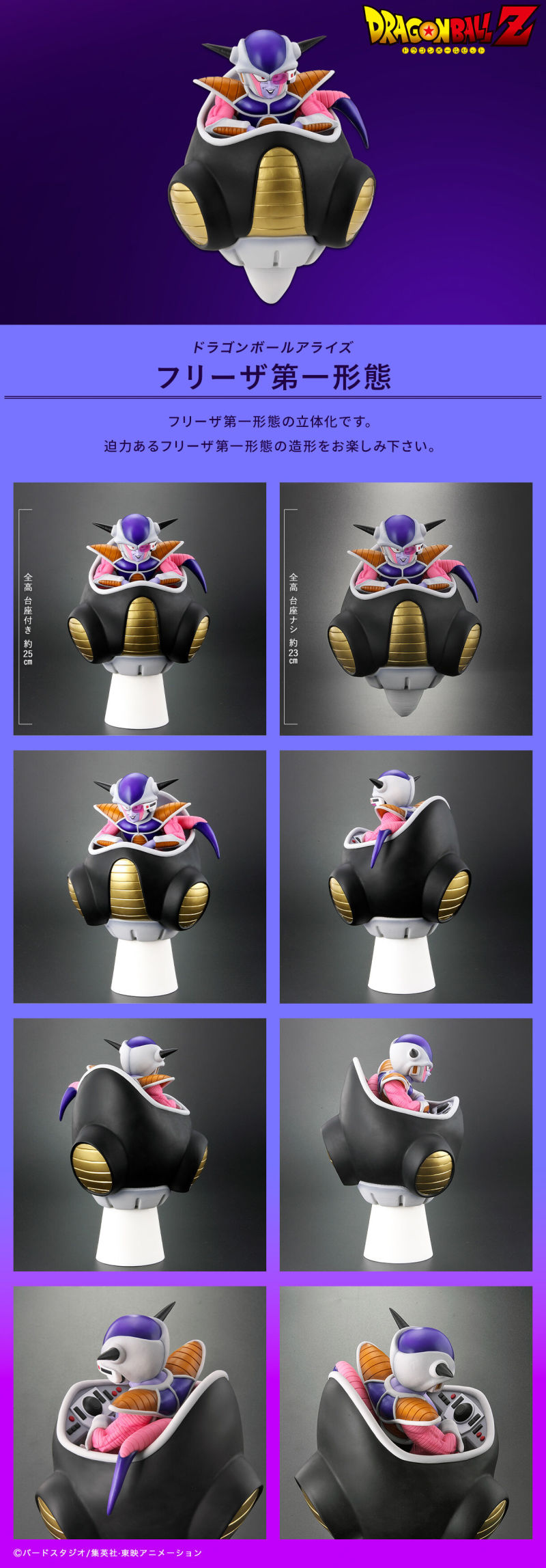 日本 PLEX 公司(株式会社プレックス)旗下的「Dragon Ball Arise (ドラゴンボールアライズ) 」商品系列在推出堪稱最醜形態的「弗利沙 第三形態」、魄力肌肉造型的「弗利沙 第二形態」之後,又將在 2023 年 9 月發售最新作「弗利沙 第一形態」PVC塗裝完成品!