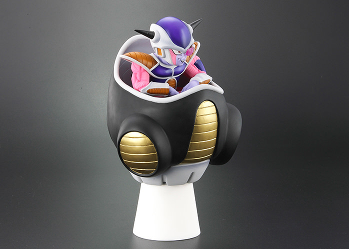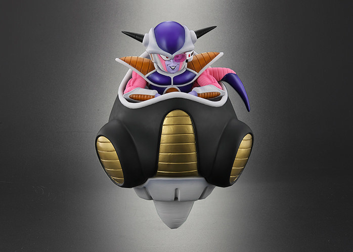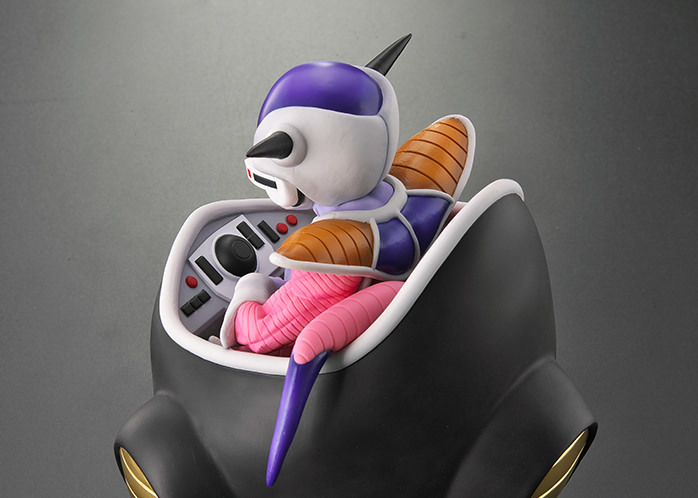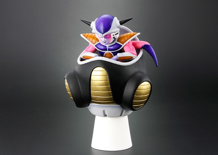 這次採用全高 23 公分(含台座是 25 公分)規格立體化的「弗利沙大王」以戰鬥力 53 萬的第一形態、坐在單人座艙當中的經典樣貌為題設計,再現了大王臉上略顯奸巧的惡意笑容、史考特、異星風格的戰鬥服盔甲,以及粉紫配色的皮膚,並將皮膚紋理、盔甲刻線、座艙儀表板細節......等考究還原,整體可說是充分展現聞名宇宙之恐怖帝王的魄力。