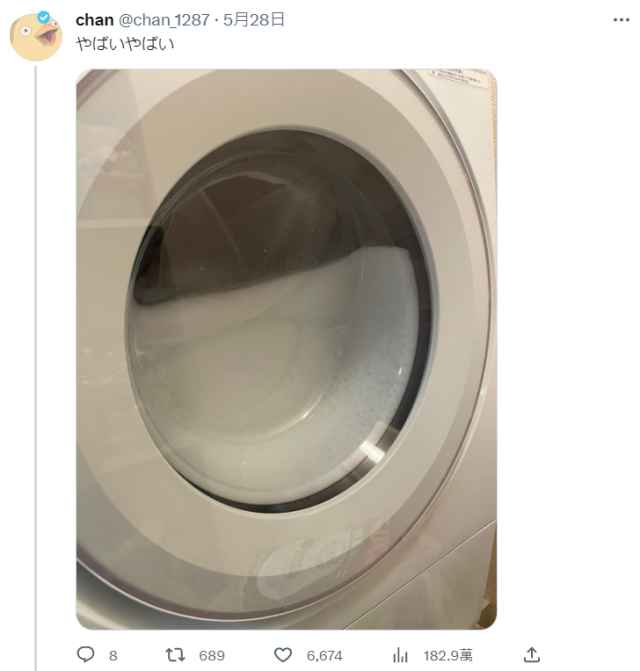 這就是典型的難得做家事卻越幫越忙?平時身為醫學研究者的推主chan(@chan_1287)某天似乎心血來潮要使用自家洗衣機,可不知為什麼明明洗衣機有自動投入洗劑功能,他卻自己「手動」從投入口加了兩公升的洗衣精進去!