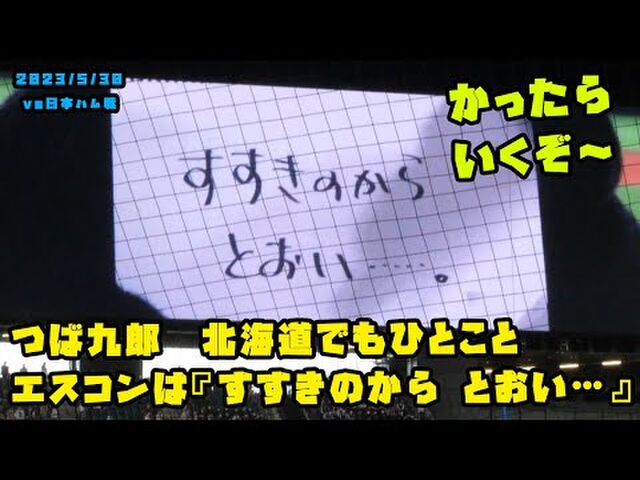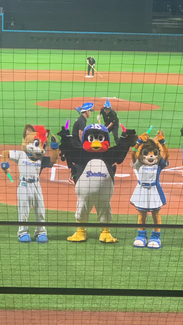 本周 ( 5/30~6/1 ) 受邀日本北海道火腿鬥士隊合作兩隊交流賽的「つば九郎コラボ」活動,歡請燕九郎來開球,搞怪行徑又一次笑翻所有球迷與網友,成為推特話題之一。
