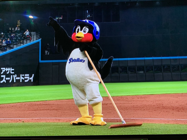 日本職棒東京養樂多燕子的吉祥物 - 燕九郎(つば九郎)從 1994 年加入球隊後,以可愛又搞怪的形象吸引不少粉絲,時常做出出格的行為,因此被戲稱為畜牲企鵝,成為日職吉祥物代表之一。