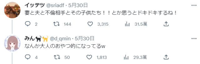 ▼有人還腦補說:「是妻子丈夫和不倫對象和他們的小孩!!想到就覺得好興奮!」