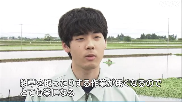 現在,富山縣富山市的一所農業高中靠機器人再現了鴨間稻的景象。這是他們從去年開始的課「無農藥種稻」的一環,透過和新創公司合作,開發了能達到鴨間稻效果的實驗機器人。