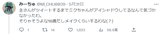 看到這裡有不少人質疑是不是假的同人作,推主直接上了等身掛報和官方高解析度的圖像,證實初音真的有化眼影!!