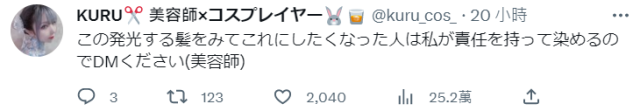 ▼看到自己的悲劇照片變成大熱門,眼神死的推主還是不忘本業地說:「看了之後也想要這個發光頭髮的人,我會負起責任幫大家染的,請私訊我」