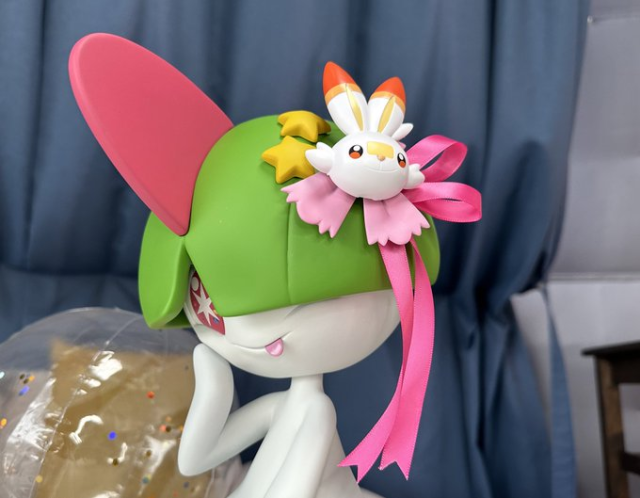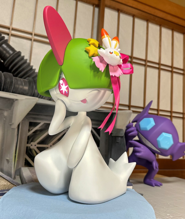 這次一樣完全以手工黏土捏製而成,ねんどよしりん對於寶可夢的造型製作已經到了爐火純青的地步,這次特別加上《【我推的孩子】》星野愛的「偶像眼睛」特色點綴,讓通常不顯露眼睛的拉魯拉絲有了不同的魅力。