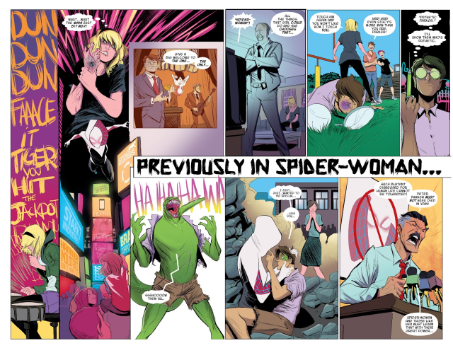 本片開頭以關史黛西的視角,重頭說了一遍《蜘蛛人:新宇宙》的劇情。也借此帶我們一窺「蜘蛛關」以及她所在的「65號宇宙」更多不為人知的起源。