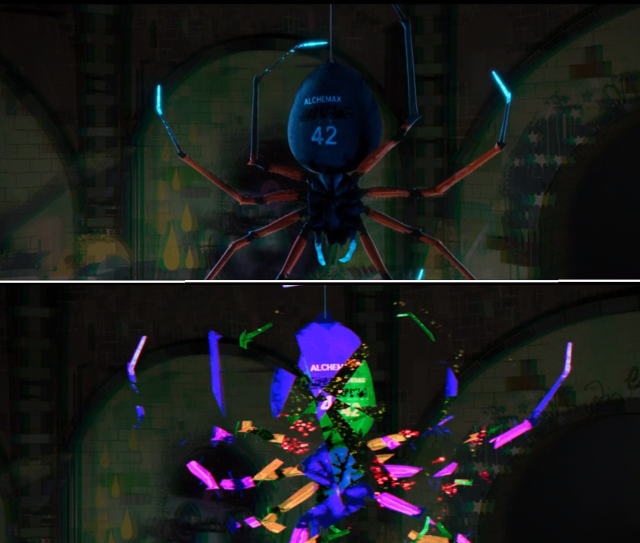 輻射蜘蛛來自42號宇宙,其實從第一集就開始鋪陳了。當時這隻蜘蛛還出現了其他宇宙蜘蛛人都會出現的「故障」(glitch) 現象,其實就暗示他來自不同宇宙。
