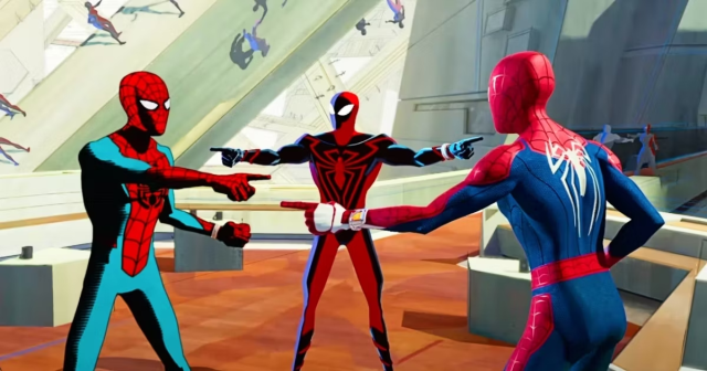 米蓋爾下令蜘蛛聯盟捉拿「蜘蛛人」,每個蜘蛛人都作出了1967年動畫版中經典的「蜘蛛互指」迷因橋段。