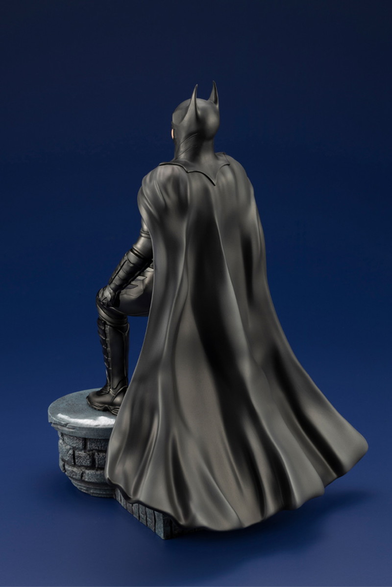 本次以 34.4 公分立體化的「蝙蝠俠」是根據《閃電俠》當中登場的基頓版蝙蝠俠為題設計,從官圖來看,應該與早先 Hot Toys 發表的 1/6 比例收藏人偶相同都是穿著全新的現代戰衣(Modern Suit),呈現出蝙蝠俠踩著石造建築底座、凝視著遠方天空的樣貌,手裡還拿著蝙蝠飛鏢,戰衣部分的刻線、腰帶的裝備、胸口的蝙蝠標誌,與形塑出飄動效果的披風都有著不錯的表現。