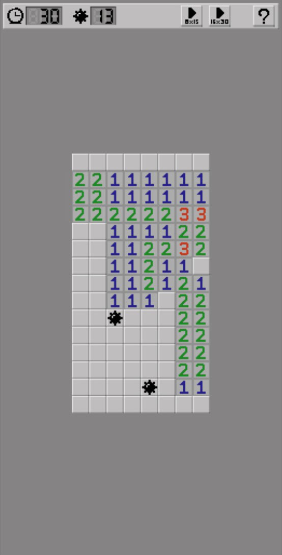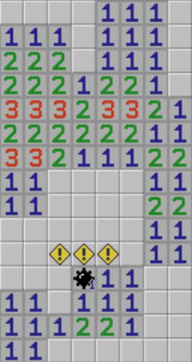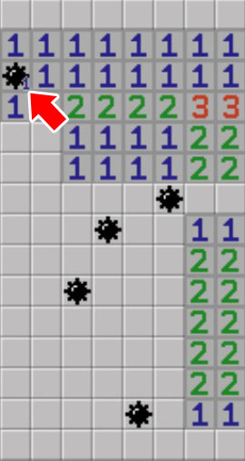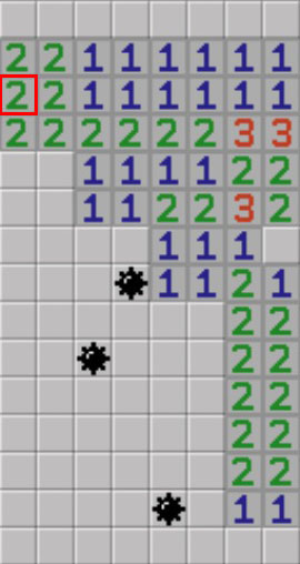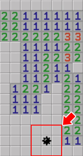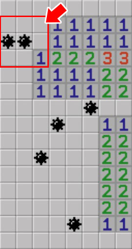 ▼因為剛才2的區域是2×3,所以在旁邊再放顆地雷就能蓋上此區