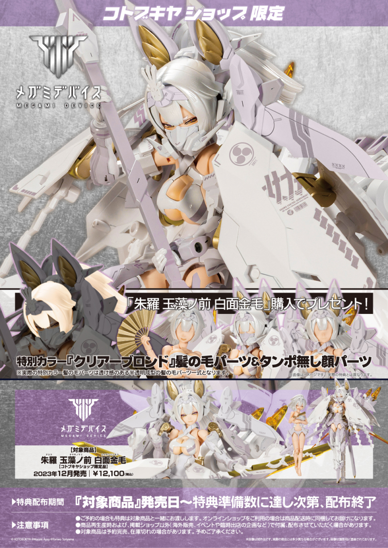 由日本模型商壽屋所發行的人氣機娘主題組裝模型『女神裝置』系列今日發表了最新商品「朱羅 玉藻前 白面金毛」預計於 2023 年 12 月發售的消息。