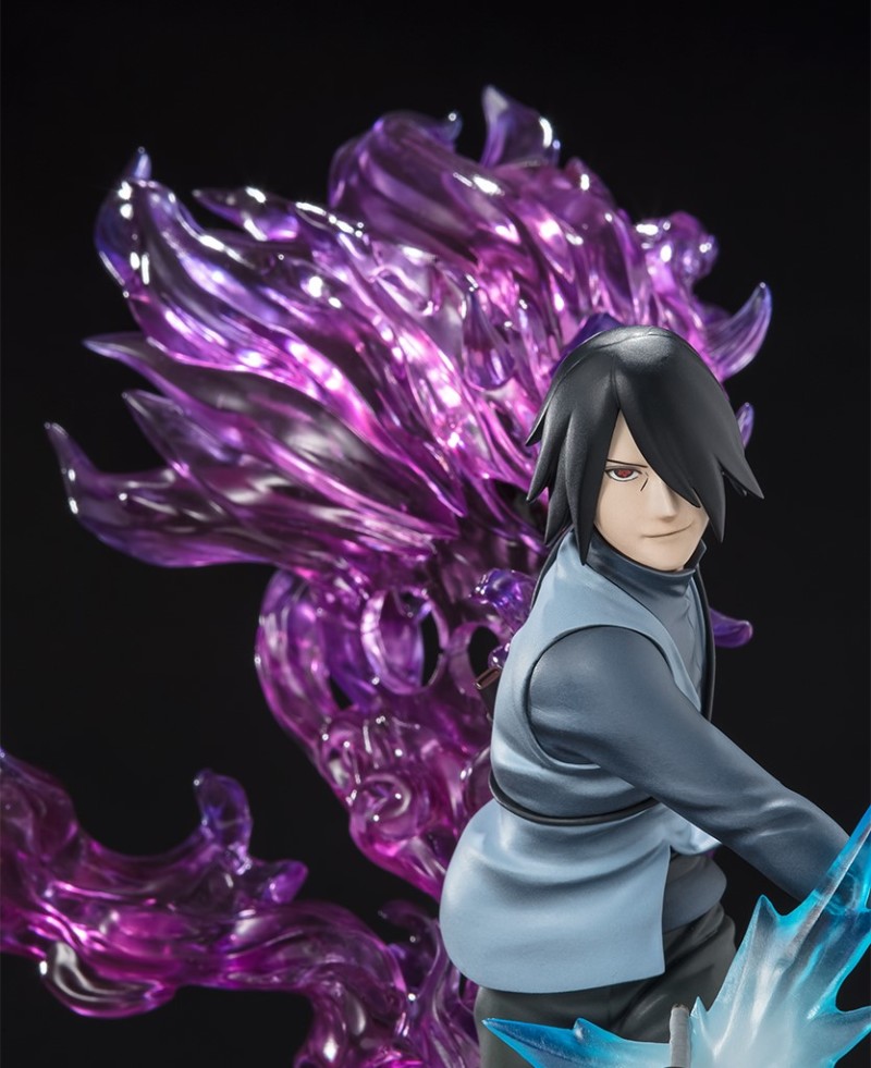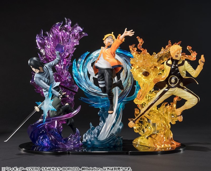 「Figuarts ZERO 宇智波佐助 -BORUTO-絆Relation」PVC塗裝完成品,尺寸全高約 24 公分,以動畫 65 話「父與子」劇中,鳴人、佐助和慕留人一起對戰大筒木桃式的激戰場景為基礎,將發動須佐能乎的佐助立體化。以漸層的紫色透明材質打華麗的招式特效,搭配丟出劍的動作,整體充滿躍動感。勾玉造型的底座能和「慕留人」、「鳴人」一起擺飾,再現合作戰鬥的場面!
