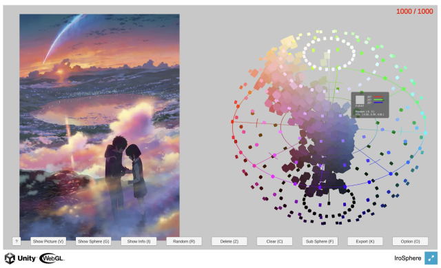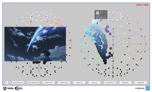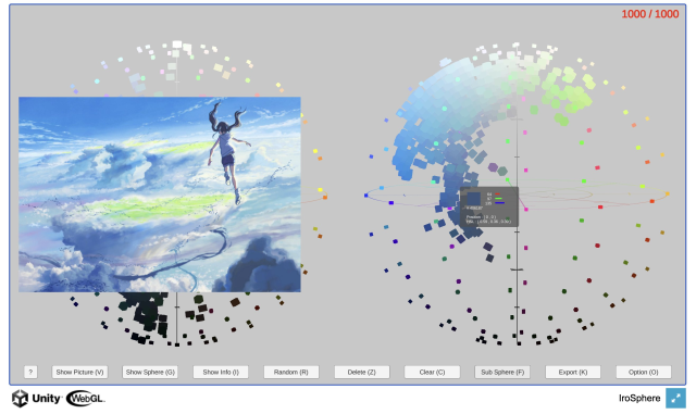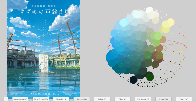 設計師ごごん在研究網路上一款3D視覺化的色相環工具時,恰巧使用了新海誠的三款電影海報,順便分析了他是如何運用色彩來描繪不同的天空。
